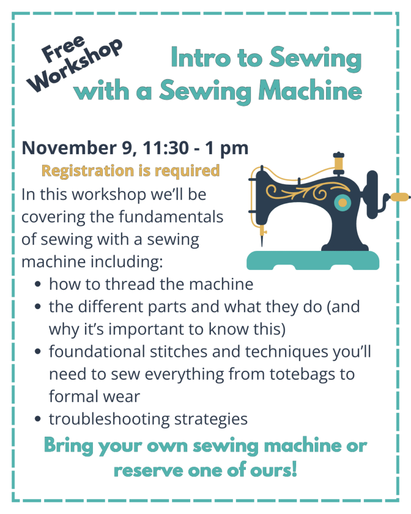 If you have your own sewing machine, but don’t know how to use it, we can help! Bring it to the class and we’ll help you get set up and sewing right away.